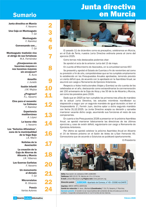 Ya está disponible en nuestra web la versión en PDF del Boletín Cultural Informativo Jubicam Febrero 2026 desde el siguiente enlace.