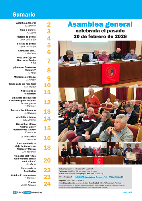 Ya está disponible en nuestra web la versión en PDF del Boletín Cultural Informativo Jubicam Abril 2026 desde el siguiente enlace.